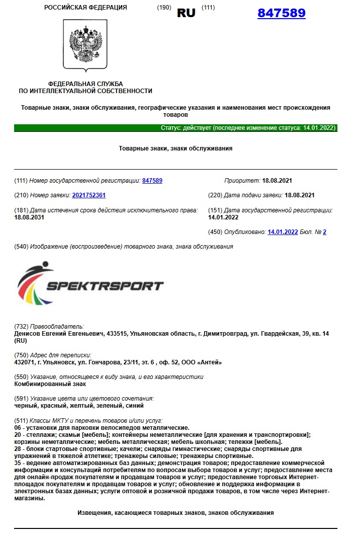 Товарный знак SPEKTRSPORT
